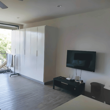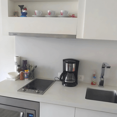 Step into a space designed for modern living. The condo features a fully equipped, contemporary kitchen that flows into an open-concept living area with a sleek, modern design. Relax on the sofa and watch the flat-screen TV or step out onto your private terrace—your own secluded sanctuary perfect for soaking up the sun and enjoying the tropical heat.